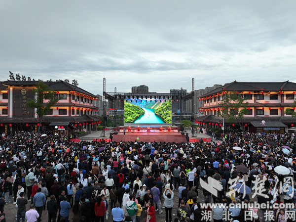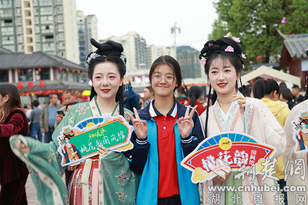 桃花源街區作為探秘“武陵峽·桃花源”的“驛站”,坐落于堵河河畔。街區包括水上景觀區、廣場光影藝術區、沉浸式商業夜游區。開街期間,景區精心安排了絢麗的煙花秀、無人機表演和三十多場精彩的文藝表演,水岸聯動、日逛夜游的沉浸式、互動化的游樂休閑形式讓游客大呼過癮。
