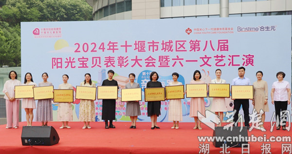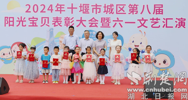 荊楚網(湖北日報網)訊(通訊員 付右)5月25日上午,十堰市城區第八屆陽光寶貝表彰大會暨慶“六一”文藝匯演在市婦幼保健院康樂廣場舉行,市衛健委黨組成員尹俊英,市婦聯黨組成員、副主席吳微,市教育局黨組成員、副局長傅良華,市婦幼保健院黨委副書記、院長曾傳軍等領導和嘉賓為獲獎小朋友頒獎。