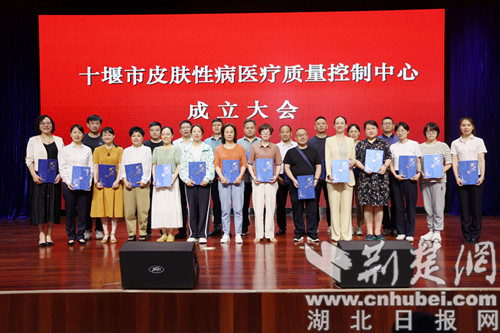 會議宣布十堰市皮膚性病醫療質量控制中心掛靠十堰人醫成立。會上,呂長兵、陳柳青、嚴彬,孫澤群分別致辭,胡圖強頒發聘書,市衛健委醫政科長郭公孫宣讀質控中心成立文件。