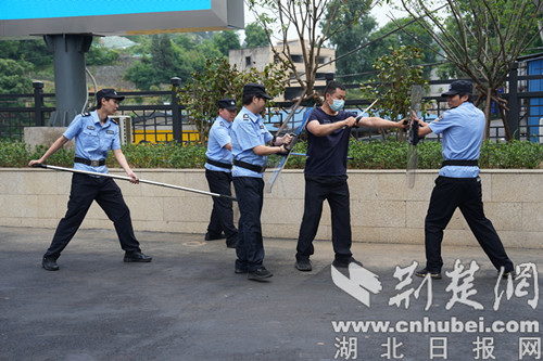 活動初始開展了應急處置演練,并進行了警械、圍擋等技能培訓講解。演練從預警到將“暴徒”制服,整個過程環環相扣處置到位,讓大家系統了解處理暴恐案事件的方式。