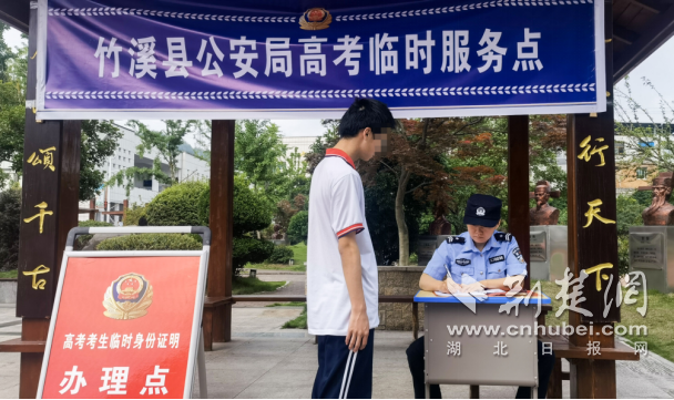 當(dāng)日 8 時(shí)20分許,竹溪縣高考考點(diǎn)外,忘帶身份證的兩名考生焦急地來到高考臨時(shí)服務(wù)點(diǎn),民警立即為考生出具了臨時(shí)身份證明,保證了考生順利參與考試。學(xué)生對民警高效服務(wù)、快捷服務(wù)表示感謝!