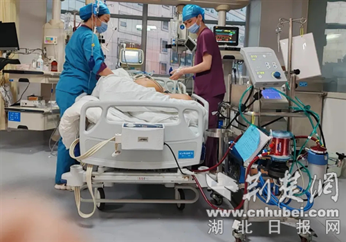 十堰市人民醫(yī)院重癥醫(yī)學(xué)科主任黃光慶當(dāng)即決定,先全力保護(hù)患者臟器及大腦功能。同時(shí)告知趙先生妻子,使用體外心肺復(fù)蘇術(shù)(ECPR)患者有可能獲救,但也可能面臨人財(cái)兩空的風(fēng)險(xiǎn)。經(jīng)征得趙先生妻子同意,隨即為趙先生使用被譽(yù)為“救命神器”的體外膜肺氧合(簡(jiǎn)稱ECMO),用人工心肺機(jī)支持趙先生的心肺運(yùn)轉(zhuǎn)。