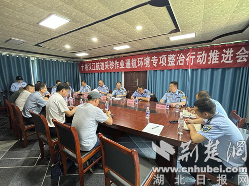 10時許,執法人員登船到鄖西縣天河口碼頭海事躉船會議室召開工作推進會。先是集中觀看了水上交通安全事故警示片,隨后由市交通執法支隊傳達學習中共十堰市委、十堰市人民政府《關于加強生態環境保護堅決守護一庫碧水的實施意見》的文件精神;對漢江航道采砂作業通航環境專項整改行動情況進行通報;了解關于開展2024年“安全生產月”活動的通知。會議期間,2家涉砂企業就采砂船舶超越航區采砂、向航道內傾倒廢棄料影響航道通航安全做了表態發言。