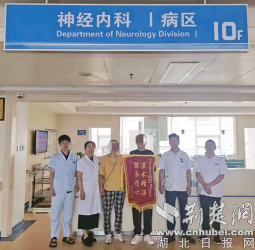 6月6日一早,恢復(fù)行動(dòng)自如的小王和母親一起,將一面鮮艷的錦旗送到神經(jīng)疾病中心主任陳光輝主任醫(yī)師手中,感謝神經(jīng)內(nèi)科一病區(qū)全體醫(yī)護(hù)人員的精湛醫(yī)術(shù)和精心護(hù)理,挽救自己的生命。