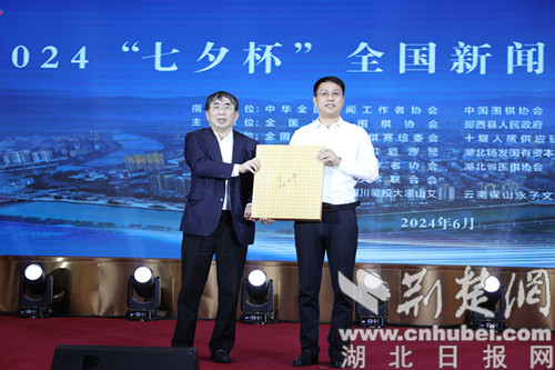 荊楚網(湖北日報網)訊(通訊員 鄒景根、高玲、汪偉)6月15日上午,2024年“七夕杯”全國新聞媒體圍棋精英賽在湖北省十堰市鄖西縣開幕。開幕式上,中國圍棋協會名譽主席、“棋圣”聶衛平向本次活動承辦方鄖西縣贈送簽名圍棋盤。