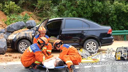 演練中,在公司應急工作領導小組的指揮下,”一路多方“單位立即集結救援隊伍,趕赴事故現場,有序進行交通管制、破拆救援、醫療救治、傷員轉運、邊坡勘測、清障處置等環節,隨著解除交通管制的指令,鄖十段高速公路恢復通行。