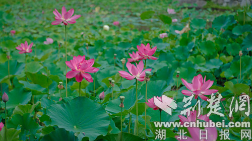 荊楚網(湖北日報網)訊(通訊員 劉灃、陳宣霖、沙正秋)眼下,十堰市茅箭區東溝村30余畝荷花此地盛開,微風吹過,荷花搖曳,荷葉生香,成為夏日里一道亮麗的風景。