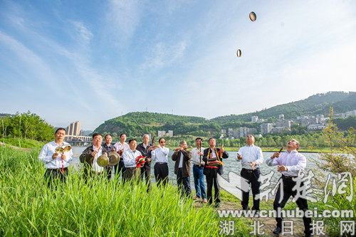 竹山牌子鑼全體傳承人在堵河岸邊開展常規訓練。賀茂堂 攝