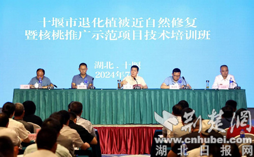 荊楚網(湖北日報網)訊(通訊員 李鎮海、曾杰、孫文勇、汪晶)7月11日上午,十堰市退化植被近自然修復暨核桃示范推廣項目技術培訓班在十堰市武當國際酒店開班。十堰市林業局相關科室和局直單位負責人,各縣市區林業局分管領導、退化林修復中標施工單位代表和核桃產業市場主體代表共120余人參加培訓。