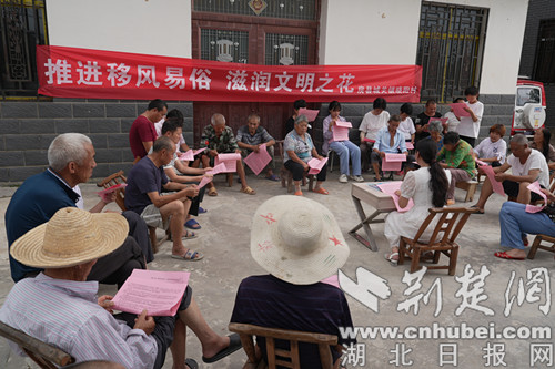 “群眾在哪里,我們的宣傳陣地就在哪里,每月我們除了定期組織志愿服務隊進村入戶開展宣傳活動外,還協助各村對標制定出村民認可的村規民約,打造推動移風易俗的‘橋頭堡’。”鎮志愿者童國軍說,移風易俗工作要久久為功,只有經常和群眾拉家常、講政策、說變化,才能潛移默化地幫助群眾根除舊思想、改變舊觀念。