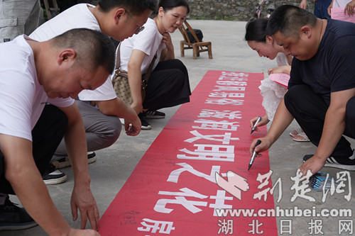 “小橫幅”簽下移風易俗莊嚴承諾。通訊員 供圖