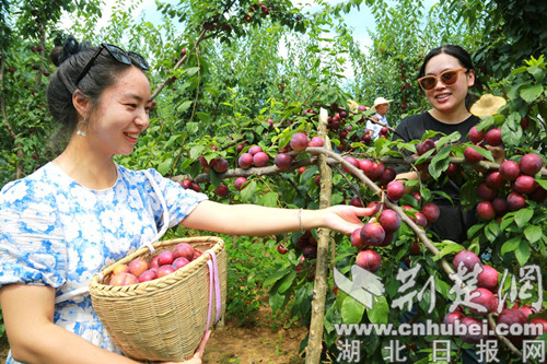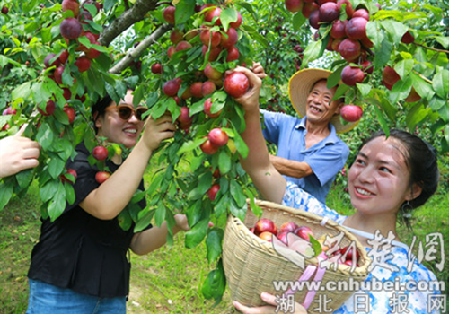 荊楚網(湖北日報網)訊(通訊員 陳昌榮 王璐)盛夏時節,酷暑難當。7月16日,竹山縣文峰鄉塘灣村的楊應義頂著烈日,帶著游客在自家的果園里采摘原生態的“冰糖李”。望著滿園又大又甜、色澤鮮艷的李子,今年70歲的楊應義樂得合不攏嘴。
