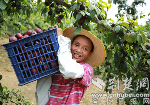 “現在正好進入盛果期,每市斤李子最高能賣到8元到10元。李子畝產約4000斤,我這8畝地的年產值有十萬多元!”楊應義笑著說道。