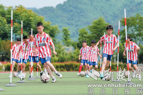 荊楚網(湖北日報網)訊(通訊員 孟瑩、延洪鑫)“好球!壓上去!”“傳身后,走邊路,就這樣踢!”7月20日下午四點,在鄖西縣天河英才高中的運動場上,武漢二隊的教練員“吶喊”式指導球員進球,學生們帶球、傳球、射門等動作一氣呵成,并取得本場比賽的勝利。