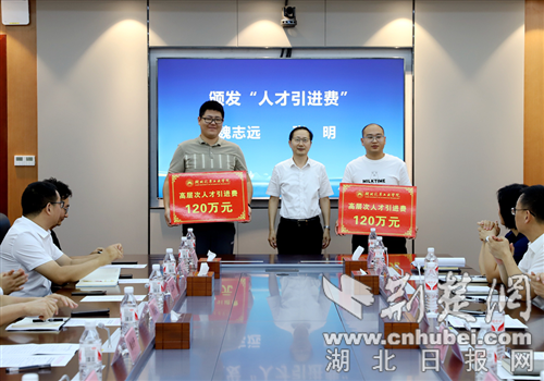 活動中,李濤與新引進博士代表趙俊武、陳西亮現場簽約,并為新引進A類博士代表魏志遠、張明頒發人才引進費。