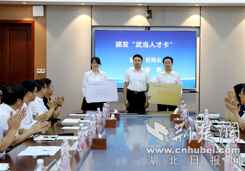 張璟璇為該校“武當人才卡”金卡、銀卡持卡人代表石則云、郭靜頒發“武當人才卡”。