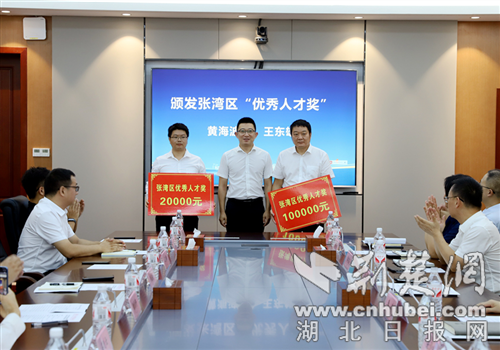 張滿為張灣區2023年度優秀人才獎獲獎代表黃海波、王東雄頒獎。