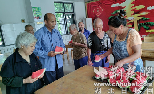 西溝鄉(xiāng)福利院為老人提供西瓜解暑降溫。 通訊員 供圖