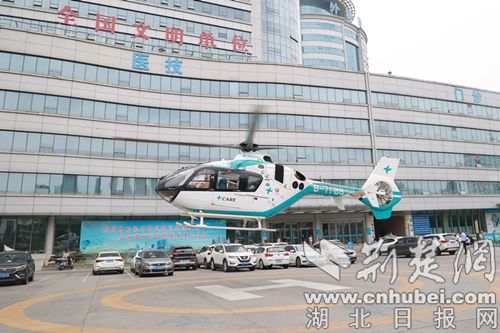 12時37分,伴隨著巨大的轟鳴聲,直升機從十堰人醫健康廣場起飛;13時6分在鄖西縣景陽鄉指定地點降落,隨機醫護人員對患者進行了緊急處理,并將患者及時轉運至直升機上;13時10分再次起飛,13時40分順利返回十堰人醫。原本陸地轉運患者單趟需要2個半小時,十堰人醫直升機僅用時30分鐘,為患者贏得了寶貴的救治時間。