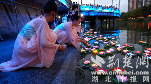 荊楚網(wǎng)(湖北日報(bào)網(wǎng))訊(通訊員 鄒景根、徐光意)如“七”而遇,相逢今“夕”。8月10日,農(nóng)歷七月初七,是中國傳統(tǒng)節(jié)日七夕節(jié),當(dāng)天傍晚,湖北省鄖西縣天河之畔,身著彩裝的“織女”,將一盞盞河燈輕放于河面上,滿載祝福的五彩河燈點(diǎn)亮“人間天河”。