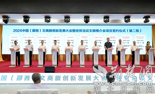 荊楚網(湖北日報網)訊(通訊員 紀楓波、鄒景根)七夕故里,喜迎創(chuàng)新發(fā)展新機遇;紅色沃土,奏響綠色低碳最強音。8月12日,2024中國(鄖西)文商旅創(chuàng)新發(fā)展大會暨經貿洽談文旅推介會在鄖西縣天河酒店舉行。會議詳細推介鄖西文旅資源、優(yōu)勢產業(yè)、一流的營商環(huán)境。來自部分省市的商會負責人、企業(yè)家代表,圍繞“文商旅深度融合助推鄉(xiāng)村振興”話題,共商發(fā)展大計,攜手合作共贏。