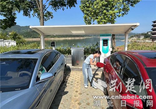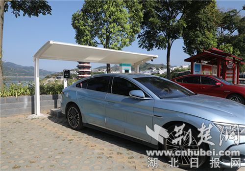 在竹山縣上庸鎮圣水湖旅游度假區停車場,兩個充電設施配備在停車場醒目位置,不時有人前來給自己的新能源汽車充電。肖雯雯是上庸鎮政府的一名工作人員,她將車停在車棚下的充電樁旁,熟練地給自己的新能源車進行充電。“自從裝配了這個新能源充電樁之后,對于我這個電車用戶來說實在是太友好了。每次直接把車開過來一個小時就充滿了,而且這個充電樁還配備的有雨棚,晴天的時候可以遮陽,下雨可以擋雨,非常安全、便利,我覺得非常好。”