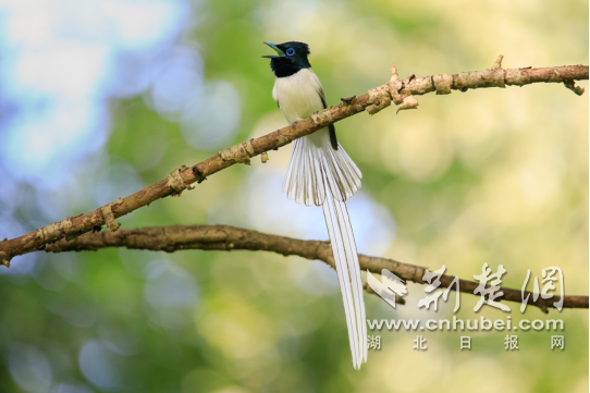 壽帶在鄖西城區林木枝頭出現。賈庚春 攝