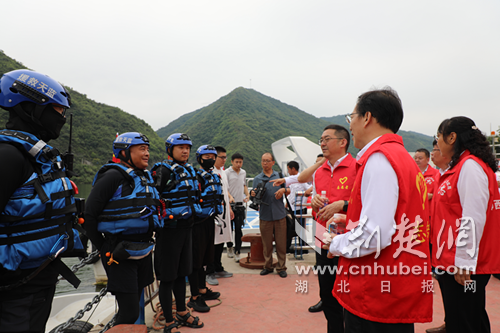 荊楚網(湖北日報網)訊(通訊員鄒景根、陳國東、韓蘭)青山遠黛,綠水成蔭,一群白鷺掠過江面,激起層層漣漪。8月29日,在漢江北岸的湖北省鄖西縣羊尾鎮龍潭碼頭,鄖西縣和陜西省白河縣近百名人大代表,聯合開展“兩省代表共攜手·守江護水在行動”活動。
