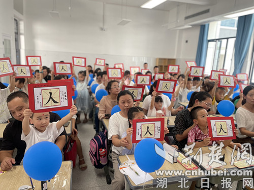 進(jìn)入校園,一年級(jí)新生在各班班主任的帶領(lǐng)下紛紛在紅紙上書寫“人”字,一撇一捺,堂堂正正,以“人”字開筆,愿孩子們與墨香為友,與筆尖共舞,用詩意的筆札勾勒出燦爛未來。隨后,新生和家長互相擁抱,感恩父母的養(yǎng)育及教導(dǎo)之恩。班主任老師帶領(lǐng)全體學(xué)生莊嚴(yán)宣誓,使孩子明確目標(biāo),努力成為一名一小好少年。