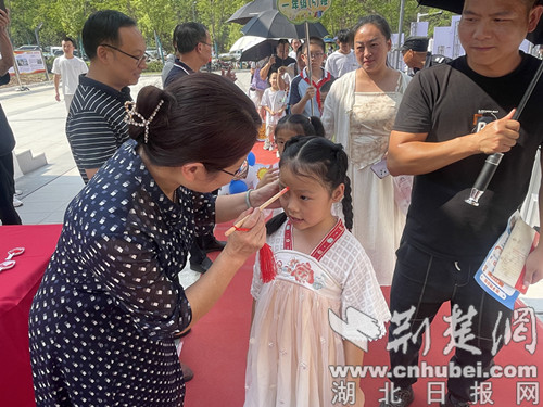 8月31日下午2時(shí)50分許,一年級(jí)的小萌娃們牽著家長的手用堅(jiān)定的步伐跨過明理路障,學(xué)校領(lǐng)導(dǎo)親自執(zhí)筆為他們?cè)陬~前點(diǎn)朱砂啟智,以此寄托美好的愿望,希望他們從此眼明心亮。隨后,新生們依次摸過大蔥、橘子等吉祥物,取下一支屬于自己的棒棒糖,還用小手擊了一下大鼓,這些入學(xué)禮寓意著“聰明伶俐”“大吉大利”“身體棒棒”“一鳴驚人”。家長們對(duì)著別出心裁的入學(xué)吉祥禮表示贊嘆,紛紛跟孩子細(xì)說吉祥物的寓意。