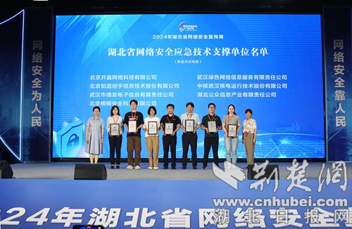 現場還對第二屆湖北省網絡安全應急技術支撐單位進行了授牌,恒安嘉新(北京)科技股份公司、杭州安恒信息技術股份有限公司、武漢安域信息安全技術有限公司、三六零數字安全科技集團有限公司等26家單位入選第二屆湖北省網絡安全應急技術支撐單位。目前全省共有46家湖北省網絡安全應急技術支撐單位。