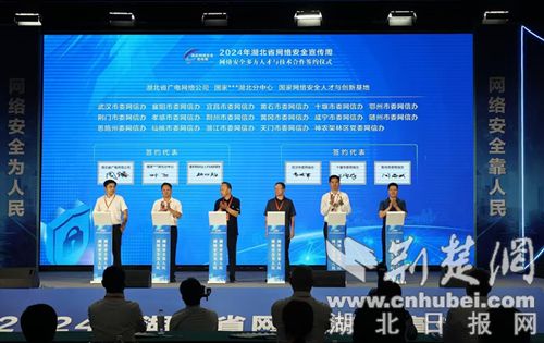 在活動現場,網絡安全多方人才與技術合作簽約儀式同步舉行,湖北省廣電網絡公司、國家網絡安全人才與創新基地等相關負責人與湖北省各市、州網信部門代表完成簽約。