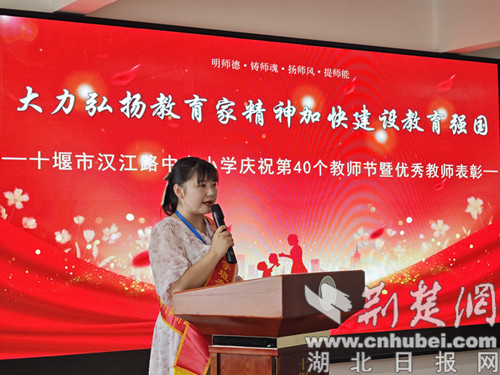 荊楚網(湖北日報網)訊(通訊員 汪雪雨 蔣焰 杜興云)為在全校營造尊師重教的良好氛圍,加強師德師風建設,激勵廣大教師以實際行動弘揚教育家精神,9月10日下午,十堰市張灣區漢江路中心小學舉行了以“大力弘揚教育家精神,加快建設教育強國”為主題的教師節慶祝活動。