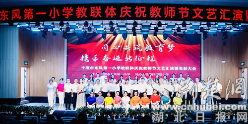 荊楚網(wǎng)(湖北日報網(wǎng))訊(通訊員 陳艷榮 石雅琳)9月10日下午,十堰市東風(fēng)第一小學(xué)教聯(lián)體5所學(xué)校近500名教師在張灣區(qū)國瑞小學(xué)歡聚一堂,舉行以“同心共筑教育夢,攜手奮進新征程”為主題的慶祝教師節(jié)文藝匯演暨表彰大會。張灣區(qū)教育局黨委書記、局長周鈞出席活動,與教師們共同慶祝這一重要節(jié)日。