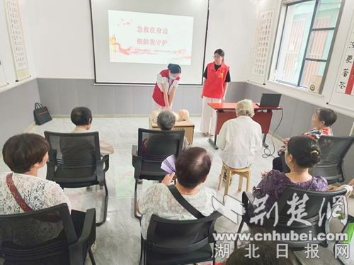 荊楚網(湖北日報網)訊(通訊員 胡文麗) 9月12日下午,十堰市張灣區花果街道二堰鋪社區婦聯聯合十堰市中西醫結合醫院、紅十字會工作人員為轄區居民開展“救在身邊,銀齡守護”世界急救日宣傳活動,教大家精準識別緊急救助的“黃金四分鐘”,從而贏得最佳生命時機。