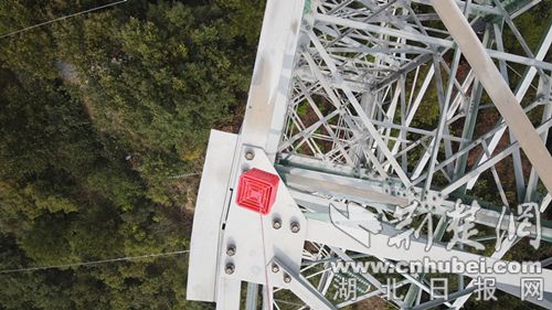 荊楚網(湖北日報網)訊(通訊員 郝金鑫)“驅鳥劑有強烈的刺激性氣味,它可以驅散鳥類遠離鐵塔,保障電網運行安全。”9月12日,在湖北十堰武當山特區龍王溝村的電力秋檢現場,國家電網湖北電力(十堰南水北調)共產黨員服務隊隊員黨偉帶領李鑫睿、徐進等人,操縱一架運載無人機在山谷和河流上空來回穿梭,一會兒工夫就為220千伏汾當線166至168號輸電鐵塔布置起一道防鳥屏障。