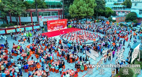 荊楚網(湖北日報網)訊(通訊員 張茜 謝媛媛 張振朋)9月12日晚,一場別開生面的迎中秋“百家宴”在湖北省十堰市茅箭區燕林社區廣場舉行,700多名居民攜自家的拿手菜歡聚一堂,熱鬧非凡。