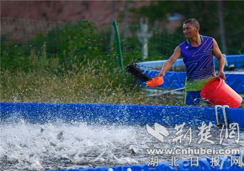 荊楚網(湖北日報網)訊(通訊員 石濡華)2024年9月16日,湖北省十堰市竹山縣溢水鎮澗溝村喬氏漁生物科技有限公司智慧水產養殖場內,飼養員用生態環保、富含鍶的山泉水養殖鱸魚、黃顥魚等名貴魚。