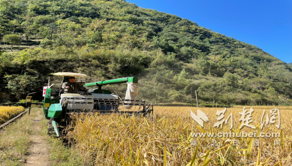 荊楚網(湖北日報網)訊(通訊員 鄒景根 高玲 程麗)稻香彌漫,遍地流“金”。金秋9月,湖北省十堰市鄖西縣水稻進入收割期。微風吹過,空氣中散發著誘人的稻香,滿眼盡是“喜看稻菽千重浪”的醉人景象。