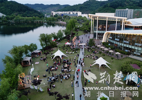 武當(dāng)山·太極之夜文商旅街區(qū)位于武當(dāng)山太極湖新區(qū)善水街,10月1日正式開街。由精品民宿群、沉浸式文商旅街區(qū)、以太極文化為主題的“夜游+夜秀”三大運(yùn)營內(nèi)容組成,通過“國潮藝術(shù)”街區(qū)、多維互動(dòng)光影秀、太極“水上微演藝”和天籟光音藝術(shù)等形式,打造心入太極的沉浸夜游體驗(yàn),環(huán)境和諧共生的夜經(jīng)濟(jì)新地標(biāo)。