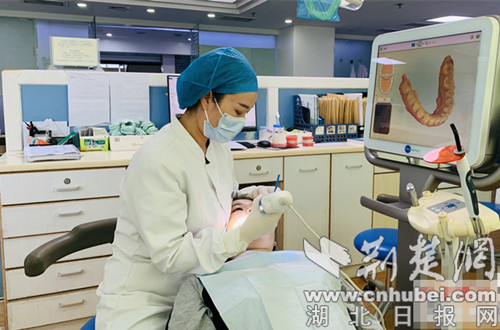 給患者做口腔掃描,訂制數字化矯正牙套。通訊員供圖