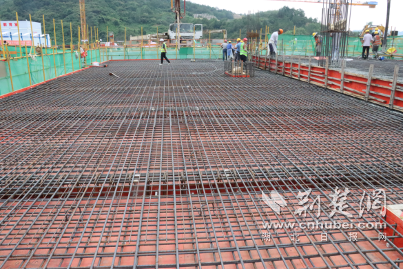 “站房地基基礎(chǔ)結(jié)構(gòu)已全部施工完成,目前正在進(jìn)行地上主體結(jié)構(gòu)施工。”鄖西站房工程項(xiàng)目部總工程師雷陳標(biāo)介紹,鄖西站西側(cè)的辦公用房已進(jìn)入二層支模階段,候車室大廳“滿堂紅”架子已搭圓,柱子即將開盤澆筑,按施工計(jì)劃年內(nèi)主體封頂,為明年裝修打下了堅(jiān)實(shí)的基礎(chǔ);站前綜合交通樞紐工程廣場(chǎng)三層主體結(jié)構(gòu)已完成80%,進(jìn)出站道路三座橋梁基礎(chǔ)正在開挖樁基,河道改移工程已完成50%。