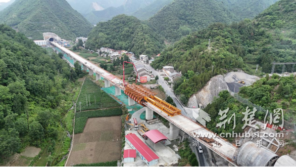 西十高鐵湖北段董家坪特大橋全橋貫通現(xiàn)場(chǎng)。 徐尤國(guó) 攝