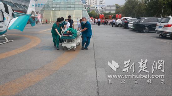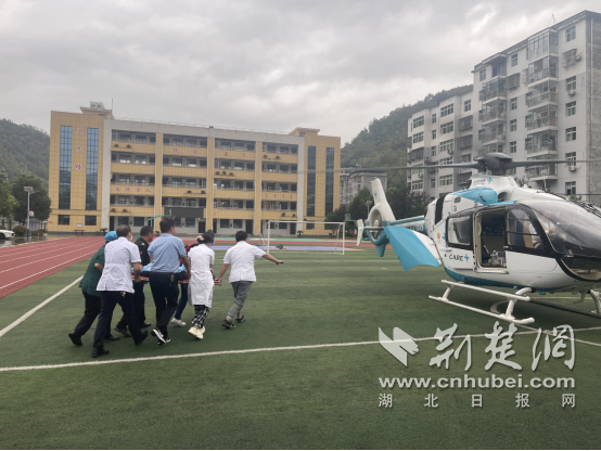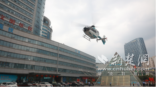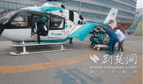16時10分,伴隨著巨大的轟鳴聲,直升機從十堰人醫健康廣場起飛;16時45分在指定地點降落,隨機醫護人員對患者進行了緊急處理,并將患者及時轉運至直升機上;16時50分再次起飛,17時25分順利返回十堰人醫。原本陸地轉運患者單趟需要2個半小時,十堰人醫直升機僅用時35分鐘就將患者順利接回,為患者贏得了寶貴的救治時間。