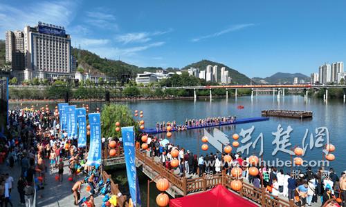 10月3日,2024年竹山縣“桃花源杯”堵河游泳挑戰賽在桃花源街區桃花埠碼頭圓滿落幕,來自陜西、河南、四川及十堰周邊縣市區的500余名游泳愛好者,以暢游堵河的方式共同歡度國慶佳節,萬名游客和竹山市民近距離觀看了一場激情與速度的視覺盛宴。近年來,竹山縣充分發揮山水資源優勢,通過舉辦龍舟賽、水上極限運動、路亞舟釣等賽事活動,發展體育運動,推進全民健身,提升竹山人氣,促進全域旅游。