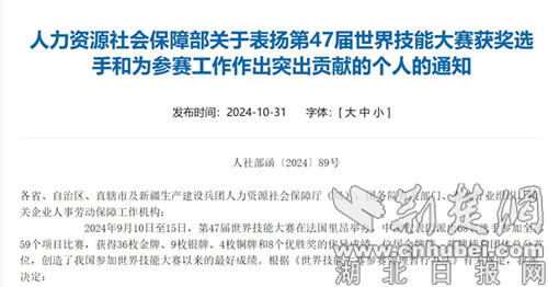 荊楚網(wǎng)(湖北日報網(wǎng))訊(通訊員 戶振濱)10月31日,國家人力資源和社會保障部發(fā)布《關(guān)于表揚(yáng)第47屆世界技能大賽獲獎選手和為參賽工作作出突出貢獻(xiàn)的個人的通知》,對在第47屆世界技能大賽參賽工作中作出突出貢獻(xiàn)的選手、技術(shù)指導(dǎo)專家、翻譯、教練予以通報表揚(yáng)。湖北東風(fēng)汽車技師學(xué)院教師吳杰(中國教練)、馬麗(中國翻譯)名列其中。