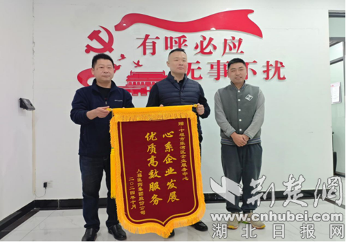 荊楚網(湖北日報網)訊(通訊員 李媛欣 張曉雨)11月7日上午,十堰市張灣區企業服務中心收到人福醫藥集團股份公司送來的一面錦旗,錦旗上“心系企業發展,優質高效服務”十二個燙金大字熠熠生輝,表達了對張灣區企業服務中心優化營商環境工作的肯定。