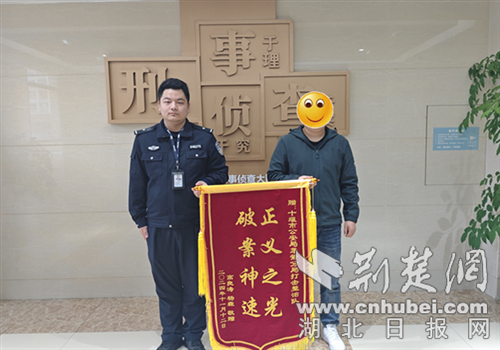 11月12日,楊先生為感謝辦案民警幫其追回被盜物品特意送了“正義之光 破案神速”的警旗。