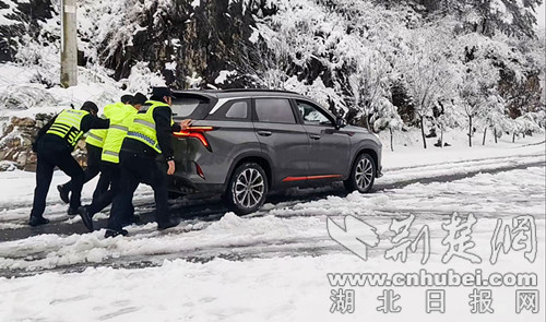 海拔1799米的鄖西縣湖北口回族鄉(xiāng),每年都是十堰市首場瑞雪降臨的地方。11月16日下午3時許,今冬第一場雪飄飄灑灑地在湖北口回族鄉(xiāng)坎子山村落下,把大山裝扮得銀裝素裹。11月17日早晨,坎子山村部分道路已積滿厚厚的一層雪,山頂上積雪厚達(dá)10厘米左右。鄖西縣公安局湖北口派出所以雪為令,第一時間啟動惡劣天氣應(yīng)急預(yù)案,全警動員,加大路面巡邏管控力度,全力保障雨雪天氣道路安全暢通和村民安全。