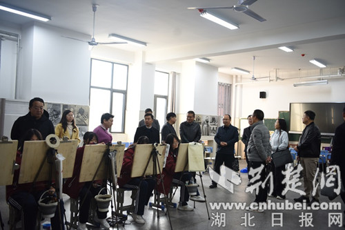隨后,考察團成員走進音樂、美術教室觀摩現場藝術教學,通過沉浸式的考察深入了解了車城高中藝術教育的獨特魅力和豐碩成果。參觀結束后,車城高中藝術中心負責人吳星就學校藝術特色教育開展情況做了專題匯報。